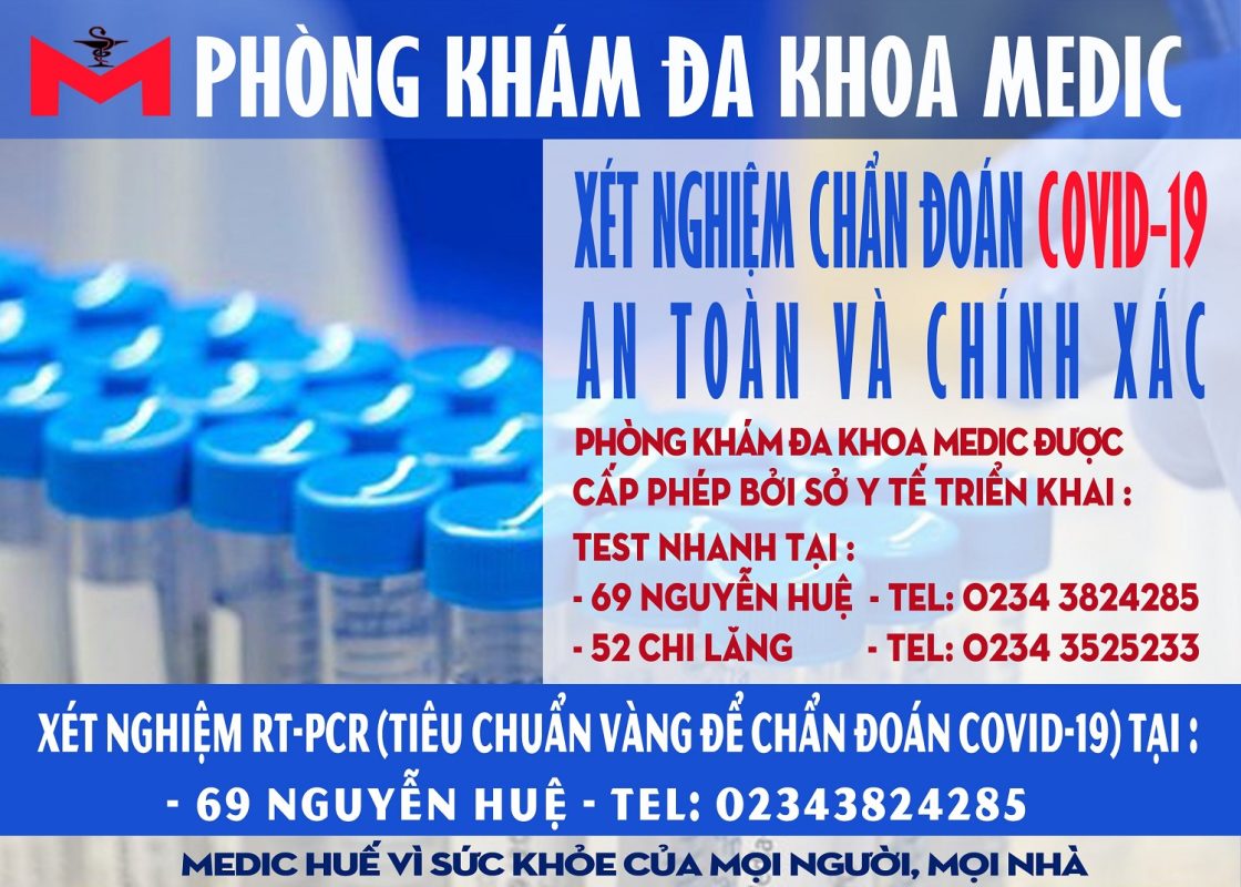 PHÒNG KHÁM ĐA KHOA MEDIC HUẾ được sự cấp phép của Sở y tế Thừa Thiên Huế, đã triển khai làm xét nghiệm RT-PCR chẩn đoán SARS-CoV 2 là tiêu chuẩn vàng trong chẩn đoán COVID-19; giúp các cơ sở và các cá nhân kiểm soát và phòng chống dịch bệnh kịp thời. Đối tượng…
